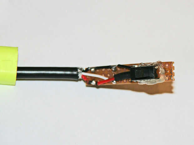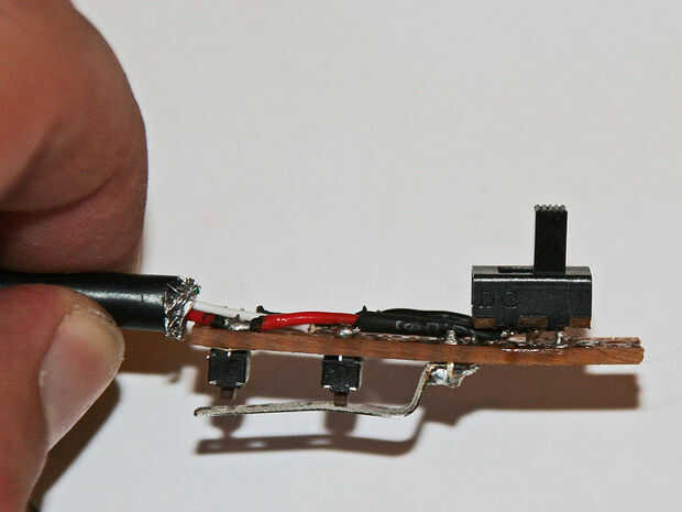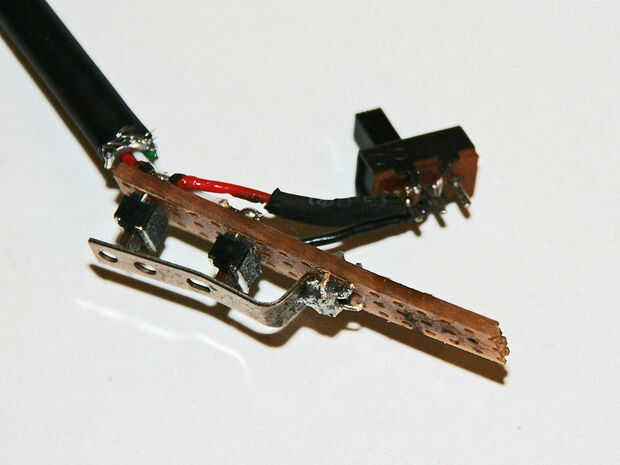 En este punto trató de soldadura t el negro hilos rojos en el tablero, poner el interruptor en los agujeros de la placa y calentar de abajo por lo que voy a seguir--no funciona!