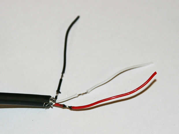 También tiene un cable con tres cables: negro, blanco y rojo.