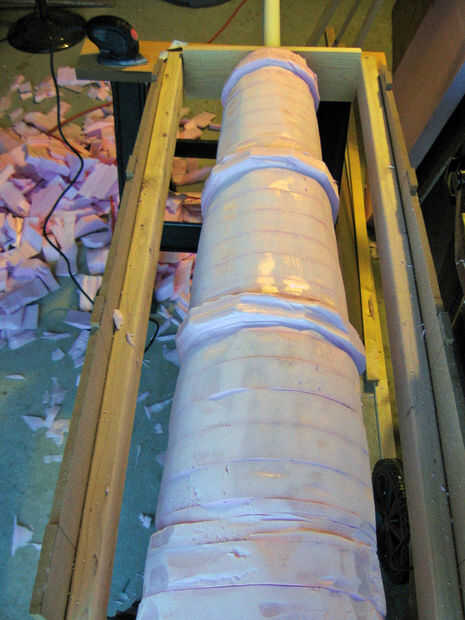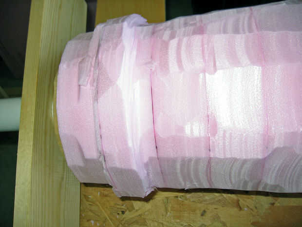 Para utilizar la plantilla, pase el cuchillo a lo largo, retirar el exceso de material. Gire el tubo y así la espuma de media pulgada o menos y hacer otra pasada con la herramienta. Finalmente usted tiene forma básica.