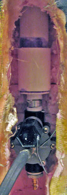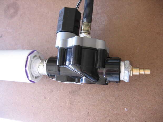 Durante la modificación de la válvula del aspersor, añades un niple roscado de 1/4 de pulgada y en esto y adjuntas una longitud de la manguera y luego la "pistola". La pistola actúa como el gatillo para disparar el cañón. La desconexión rápida está conectado a la manguera que va al compresor.