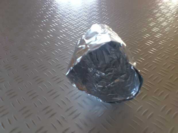 1) tomar un pedazo de papel de plata (9 x 5.5 en)