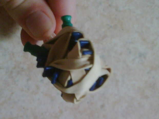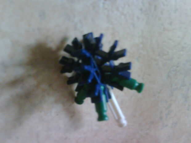 Foto 2. Tomar la parte delantera de la munición de cañón. (El azul 2 gancho-en clips con las 4 barras verdes una una barra blanca en.)