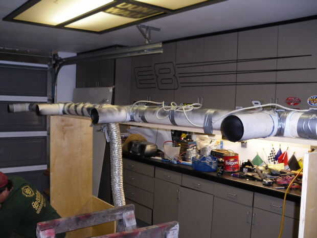 -Si usted es tener cinco cañones necesita 2 90 grado 4" PVC juntas, y tres juntas T de PVC de 4" agregar más de estos con los cañones más