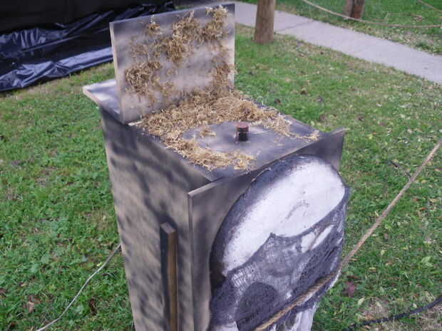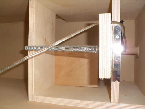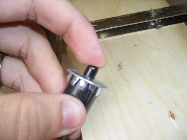 para esta parte usted va a necesitar una hoja de madera contrachapada, resorte, varilla de pasador de madera, el botón en una ferretería, creo se llama un empuje de botón momentario, cinta eléctrica, pistola, tornillos bisagra de piano. Comenzar por la construcción del stand, como ven en la imagen, el tamaño no importa altura, anchura puede ser todo lo que quieras solo cortado a la medida y asegúrese de no poner una en él. después de que el soporte se construye perfore un orificio en la parte superior grandes bastante para la varilla de pasador que tenga puede caber en ella y deslizarse libremente, esto será lo que la gente presione, ver las fotos para ver cómo se construyen los interiores, esta parte se basará principalmente en las notas del cuadro puede resaltar, este botón abre la lavadora de la válvula que , a su vez permitirá que los cañones de aire y la simultaneoously de ruido de tambor, sólo podría poner el botón momentáneo que sobresale de la parte superior del soporte y evitar que esta configuración todo pero su unssafe mucho más por el cableado ser así cerca de yemas de los dedos, esta es la ruta más segura para ir, a continuación vamos a ir sobre el humo, la cosa más simple en este proyecto de bombeo