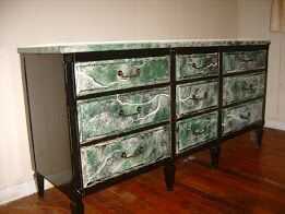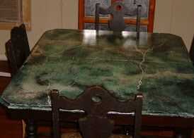 dos piezas estaban pidiendo una actualización - con un presupuesto minúsculo. Rebuscando el sótano, encontró la inspiración para crear juego acabado mármol del faux en ambas piezas, fusionarlos así como un juego comedor.