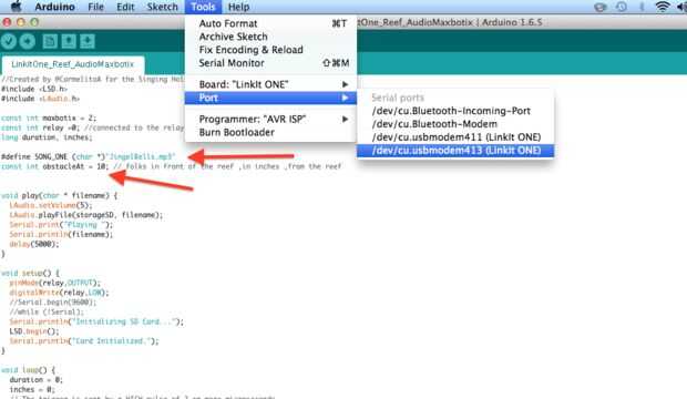Subir el código a LinkIt uno y luego el serial monitor para decidir sobre el momento persona necesita estar frente a la puerta para activar el sensor ultrasónico, en mi caso que he puesto a 10 pulgadas como se muestra en la foto de arriba.