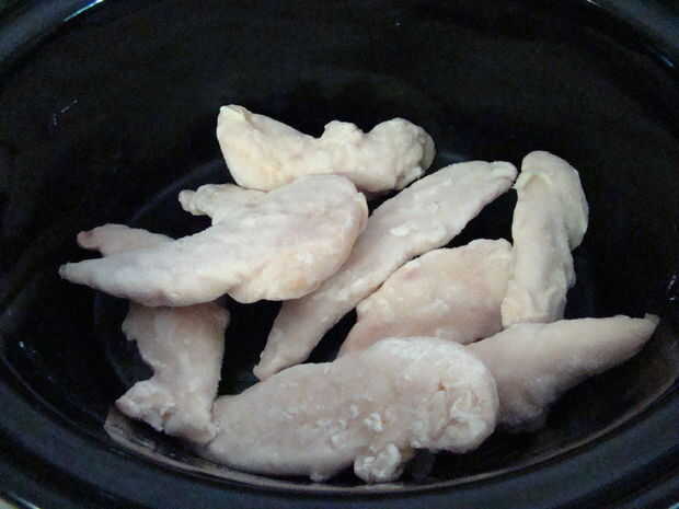 Coloque el pollo congelado en el fondo de su olla.