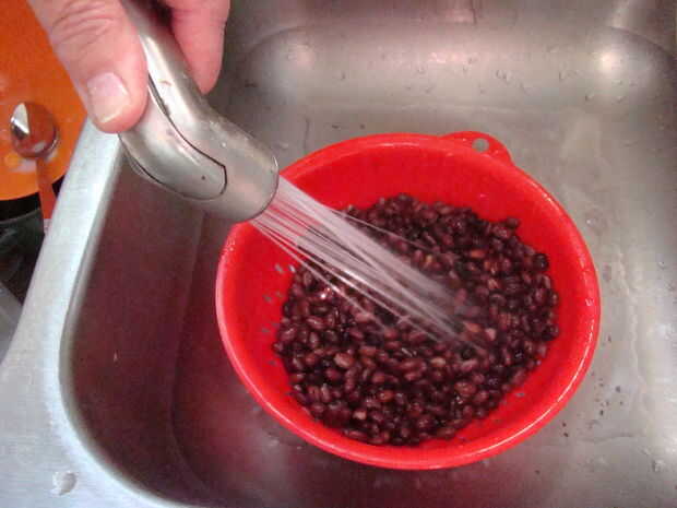 Abra el frijol negro y ponerlos en el colador.  Enjuague los frijoles