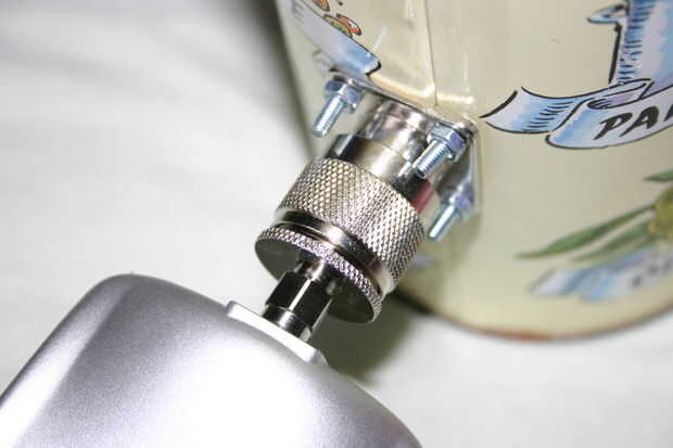 Este diseño de cantenna elimina la cola de cochino utilizando un tipo de n a adaptador SMA macho de polaridad inversa. Este adaptador conecta tu cantenna directamente con un adaptador de WiFi sin necesidad de un cable flexible.
