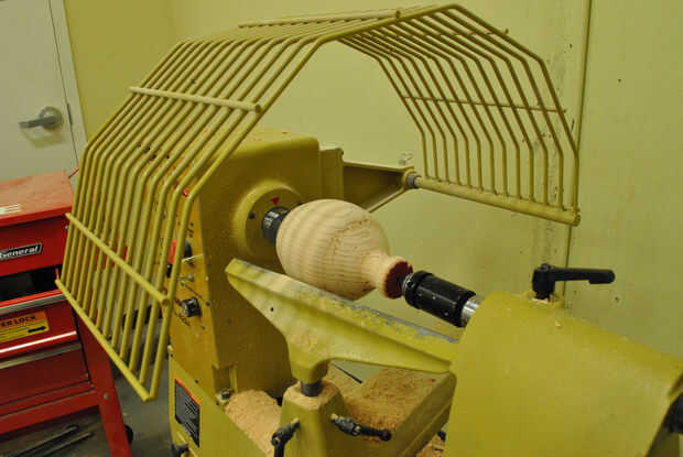 El primer paso es el proceso de torneado estándar. Si puede, haga primero la boca de la botella y se usa para fijar los centros. Esto asegurará que empiezan de forma concéntrica con la boca en el centro exacto. Estoy usando un trozo de 6 "x 6" Pino de Douglas; Por lo general no recomendamos utilizando madera blanda para varios eje trabajo (nota la sujeción alrededor del borde), pero esto es sólo una demostración y probablemente una buena opción para la primera de esos proyectos. El primer giro debe acabado liso en este paso. De arena y hacer lo que otra cosa para terminar esta superficie, no se vuelva a montaje otra vez.