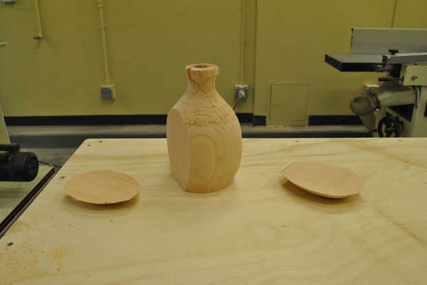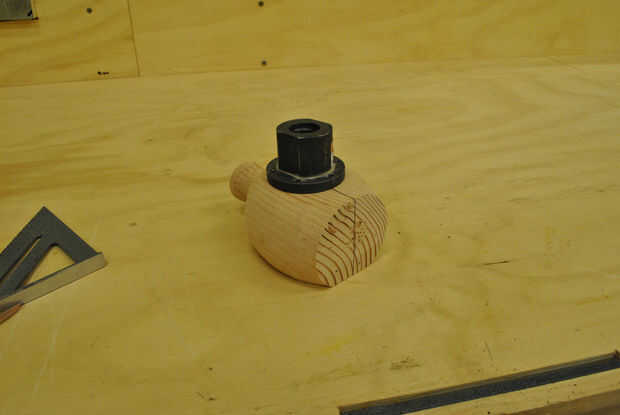 Es la parte fácil. La pieza ahora debe volver a montado a tazón de fuente interior de un lado. Yo solía una sierra de cinta pedazos cortados de dos lados, dando una superficie de montaje plana para la placa frontal. Guardar los dos vástagos de madera, va a utilizar al menos uno de ellos para tapar el gran agujero que ahora diste en el lado de la jarra.
