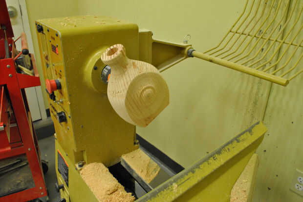 Este siguiente paso es más decorativo que otra cosa, aunque agrega un equilibrio a la pieza y se han convertido todas las superficies visibles. La jarra debe dar vuelta alrededor para que pueda trabajar el otro lado. Puede atornillar la placa frontal hacia el interior pared de la jarra, pero sólo si es lo suficientemente gruesa como para que los tornillos no tocan su cincel como cava dentro de la pieza. Una mejor opción es renunciar a la placa frontal y uso de ambos centros.