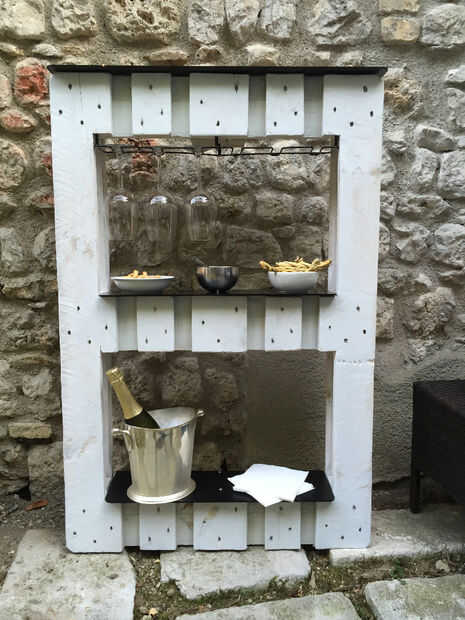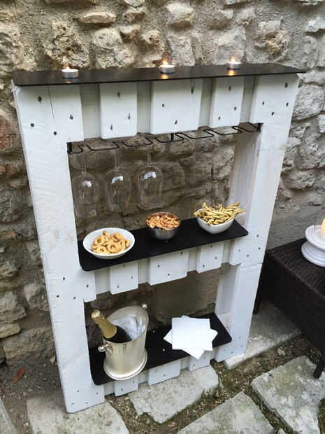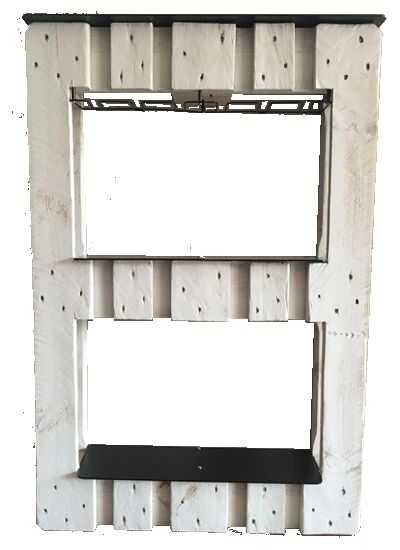 Siamo mampara da un palet EUR Abbiamo provveduto un sezionare la parte central, ricavando così 2 vani di ugual misura. Prima della verniciatura, abbiamo levigato plataforma de il con carta vetrata en modo da ejecutan la parte ruvida e quindi avere una superficie il più liscia possibile. Successivamente abbiamo verniciato spruzzo, con vernicie por todos legno' acqua. Abbiamo tagliato un láser le mensole en lamiera spessore 4 mm, forate con un taladro-atornillador una colonna ed bordo delle viti autofilettanti por il fissaccio. Il portabicchieri è stato dio su ns. Disegno da ONU ' artigiano del tondino di ferro lavorato con macchine oportuno, diversamente anche trovate dei prodotti estándar sul mercato.