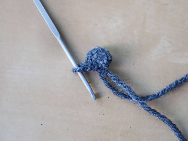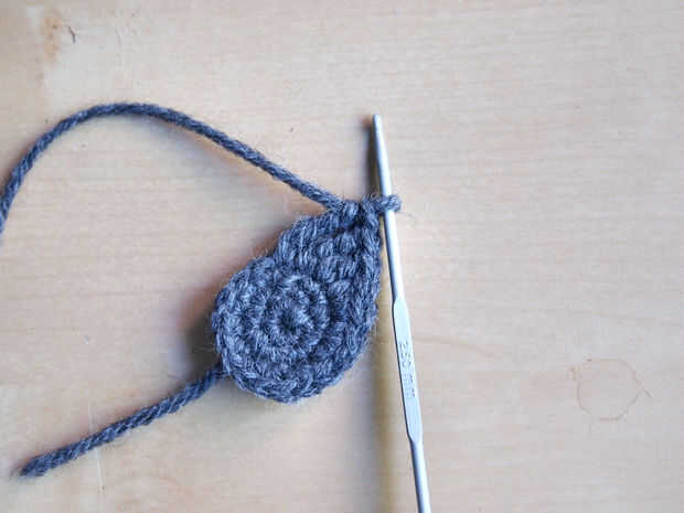 Rnd 7: SC en el siguiente, ate, deja una larga cola