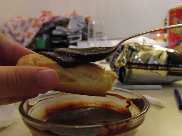 Después, hice una muy sencilla ganache con la crema de chocolate y pesada. Combinar los dos y calentar en el fogón (o 30 segundos en el microondas). Sumerja la corriente religiosa en el chocolate y listo!
