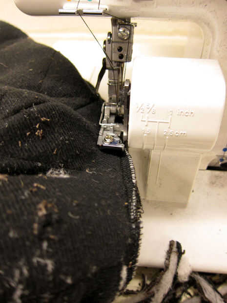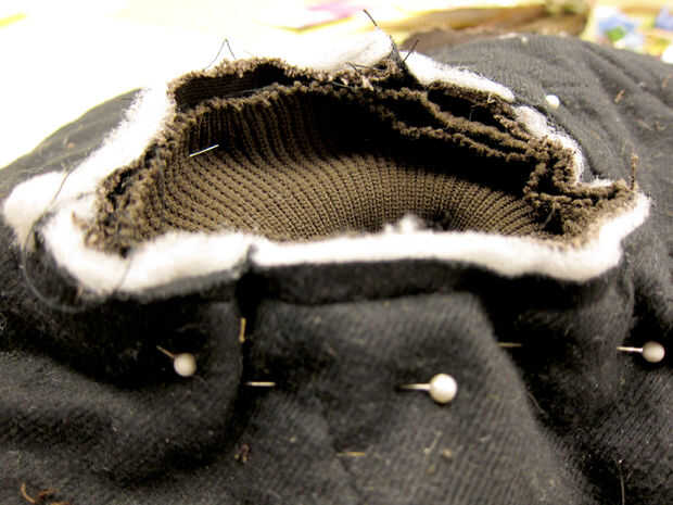 Los puños de la manga del perno en las capas exteriores y guarnición de los agujeros del brazo y coser en su lugar. Serge las costuras de la tela de los bordes de desgaste.