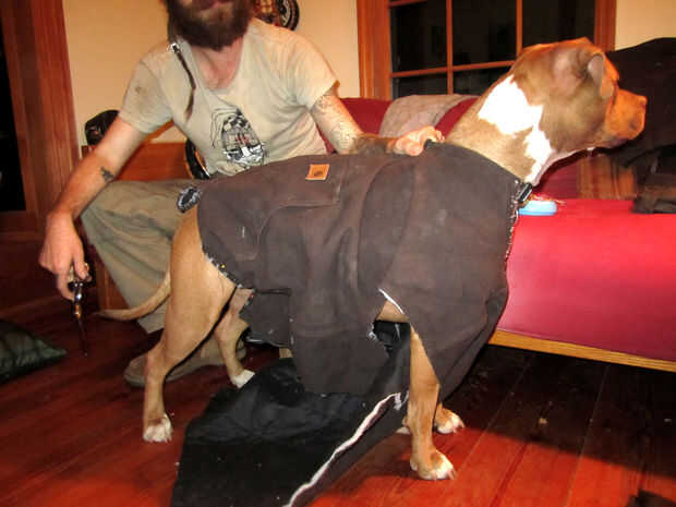 IMPORTANTE: Drapeado es un proceso complicado que he aprendido de años de experiencia y clases. Drapeado en un animal vivo es incluso más complicado que el drapeado en forma de vestido de estática, así que si esto parece difícil te pido perdón! Si usted no quiere pasar por la molestia de cubrir la capa y en su lugar quisiera un patrón básico para un pitbull-tipo-perro de tamaño mediano, saltar a paso 6.
