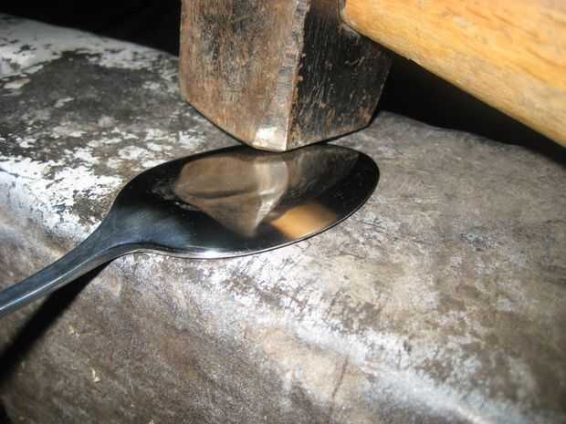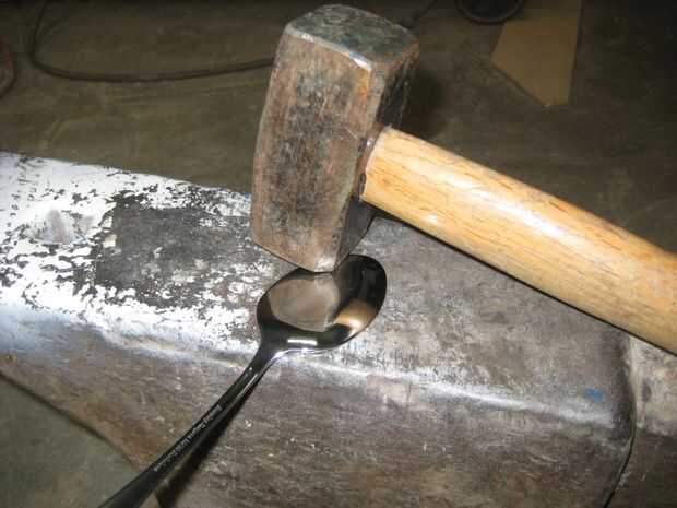 Cuidadosamente aplanar sus cucharas con su martillo. Trate de no hacer demasiados desagradables golpes en ellos. Un martillo ligeramente redondeado facilita ser aseado.