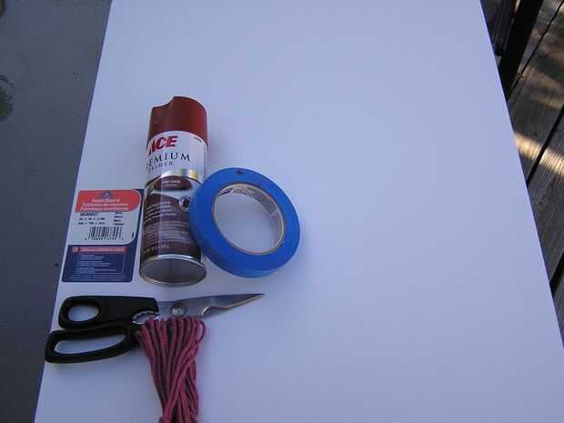 En segundo lugar, poner la cinta azul en el tablero de la espuma en forma de ladrillo. Pintura de aerosol con la pintura color ladrillo.