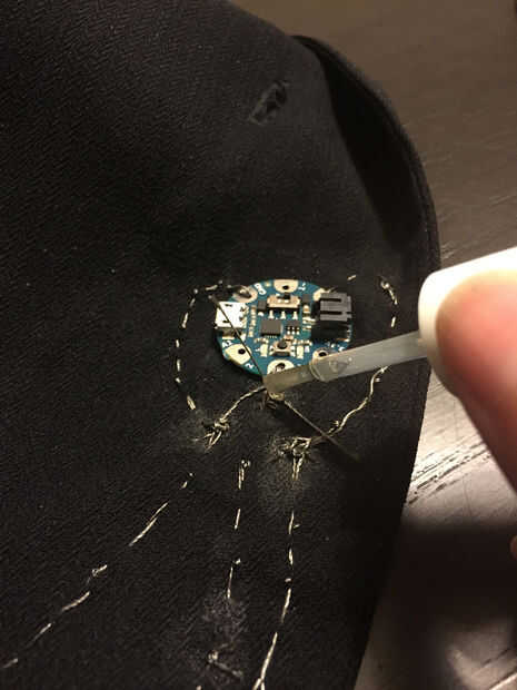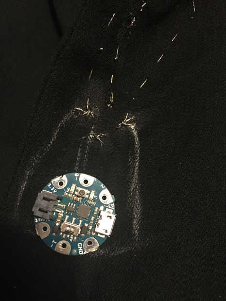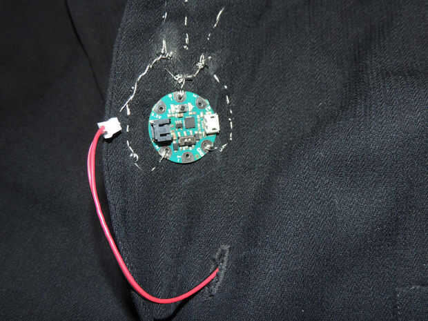 1. Encontrar un buen lugar para la placa escondida entre las capas de la chaqueta.