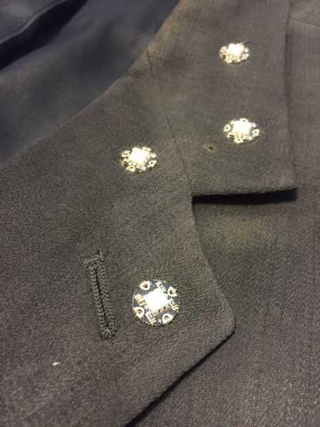 Cuando mi hija de siete años de edad consiguió un vistazo a la tira de LED que estaba probando para un proyecto, al instante empezó a pensar en otras cosas que podríamos hacer. Ella está muy contenta con el resultado.Esta diadema deslumbrante utiliza