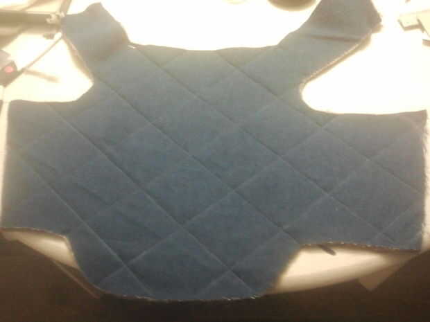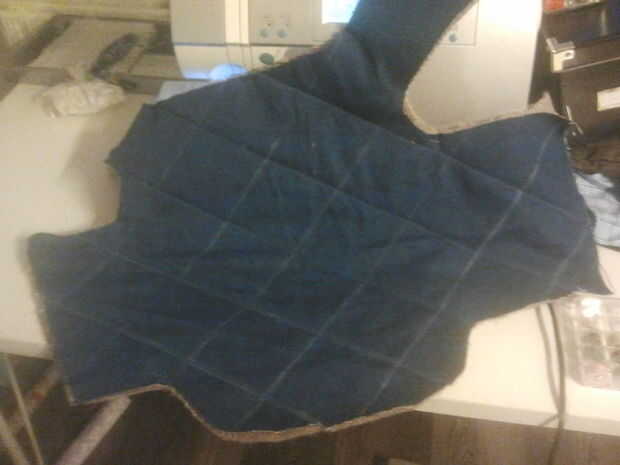 Para asegurarse de que todas las capas de la tela permanece en el lugar y generalmente haciendo la capa más caliente y agradable busca debe ser acolchado. El diseño que elegí fue pura y simple: las líneas rectas en un ángulo. Considero una medallón redondo central posterior y acolchado todo a mano, pero tiempo era contra mí, así que la alternativa simple y la máquina de coser fue elegida.