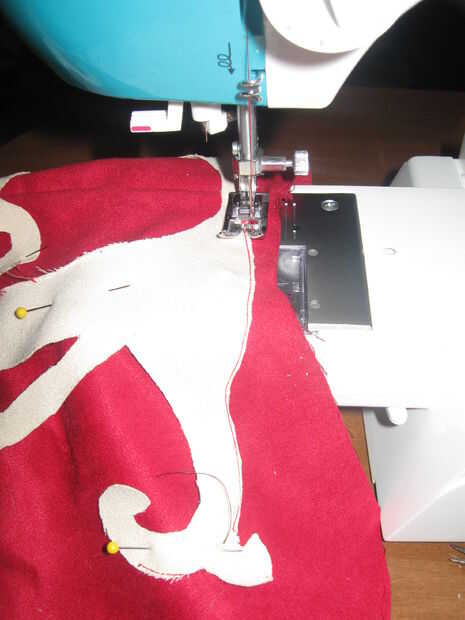 Inicio haciendo una puntada recta como cerca del borde del diseño como sea posible. Luego, corte el exceso de material.