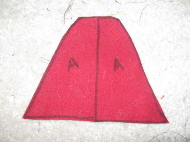 Primero, coser las dos piezas (A) junto con la costura en el interior.