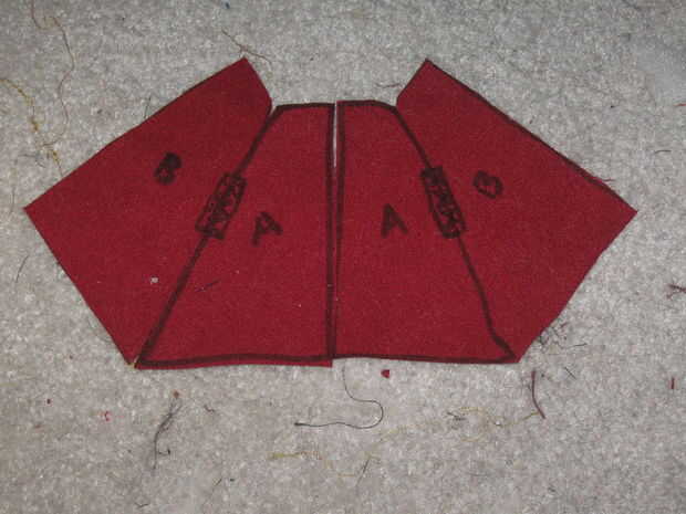 Coser las piezas (B) a las piezas (A), pero deja abierto las secciones de tachado. Estos serán los agujeros del brazo.