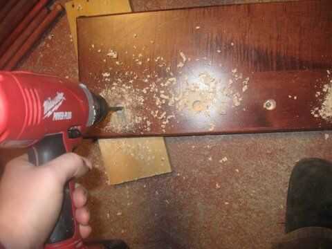 Al perforar los agujeros, pero un trozo de madera debajo de la Junta, para que no perfore en el piso. Perfore el orificio profundo lo suficiente hasta el punto de la pala de bits empuja a través de. No perforar demasiado profundo, o tendrás un problema cuando desea colocar los tacos.