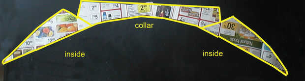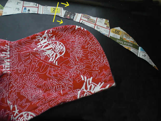 Haga una plantilla del collar por lo que se puede comparar con el material extra de la campana y la sudadera con capucha. Debe haber un montón de material. Comparé la mitad la plantilla de cuello a la mitad la campana.