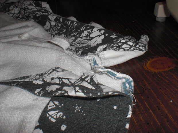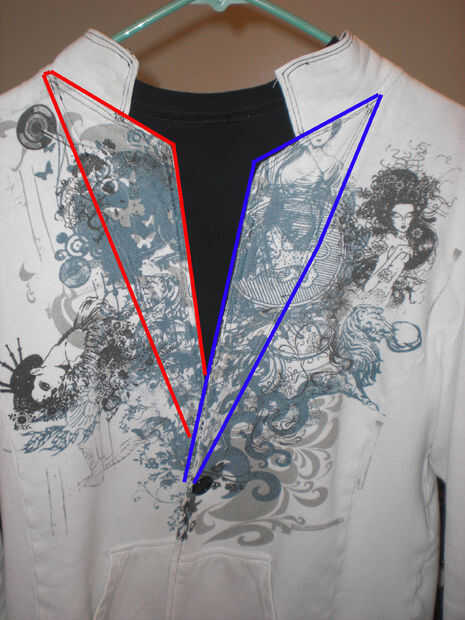 Describí los triángulos en la sudadera para que sea más fácil ver qué lado apunta hacia adentro.