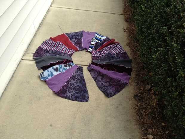 Se hacen cada vez que haya terminado. Siempre puede volver atrás y añadir a más tela. Si te cansas de la tubería y las tiras, también podría hacer muy grande 1 pie cuadrado cuadrados para hacer el último largo de la capa. Si no recorta el borde inferior, debe dobladillado aunque.
