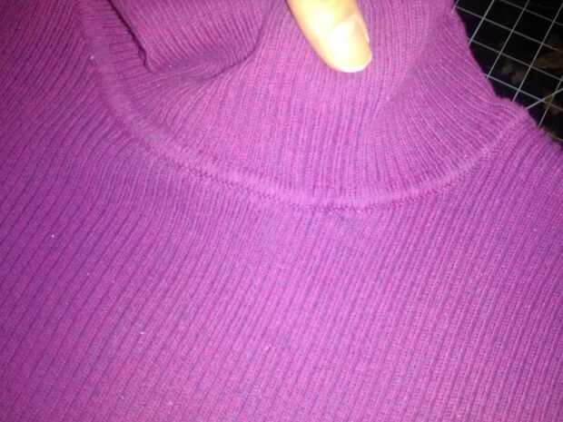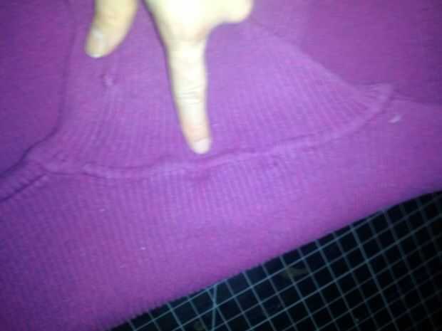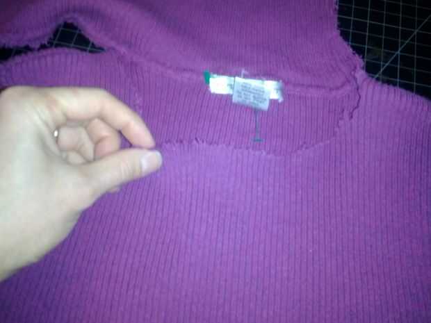 Cortar el cuello de la chompa dependiendo de cómo desea la apertura de la campana - ser consciente a cortar a lo largo de la costura. Si sólo se corta una U grande de la parte superior, que va cortando cuello/upperback valioso espacio. Corte hasta una pulgada o dos lejos donde el collar era, si lo desea, de lo contrario, simplemente corte a lo largo de la costura.