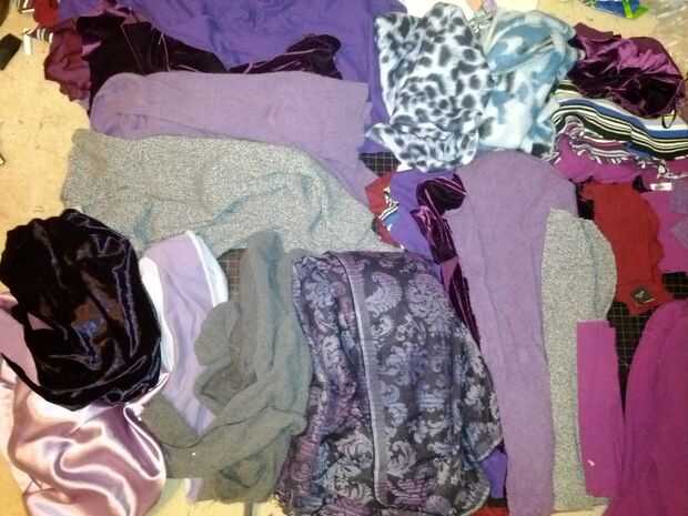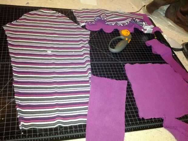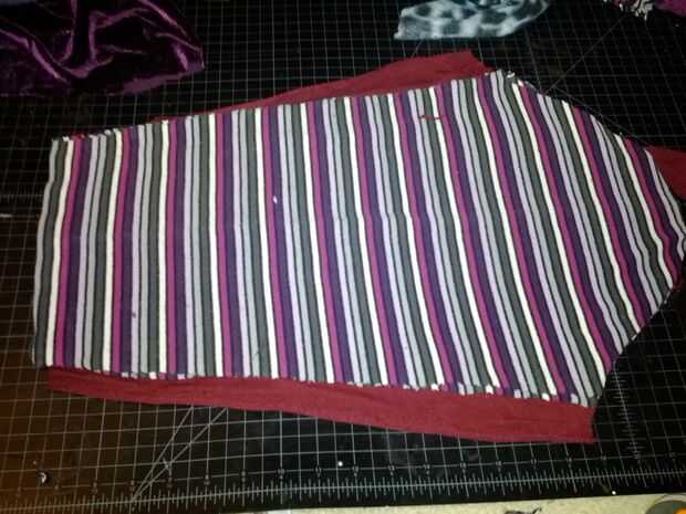 Otra cosa - si usted encuentra algunos suéteres muy grandes, puede cortar paneles de torso/detrás de los suéteres con los recortes del brazo como plantilla. Probablemente no tendrás suficiente izquierda encima para las tiras en la capucha y mangas.