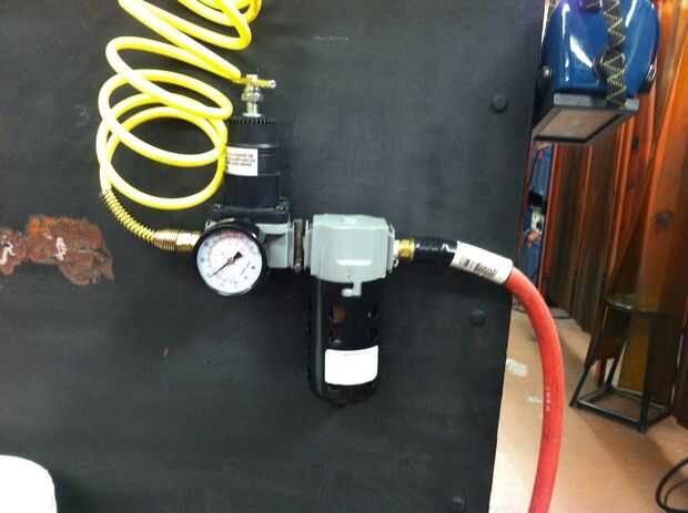 Ajuste la presión de los reguladores a 40 psi para no perder el polvo.