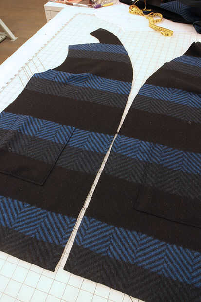 ► Comienzo que cose con los dardos delanteros. Doble dart por la mitad a lo largo de la marca de tiza y coincidencia de las muescas. PIN y coser a partir de las muescas y terminando 1/2" más allá de la marca. Puntada de nuevo o ATE. Repita el procedimiento en segunda pieza delantera.