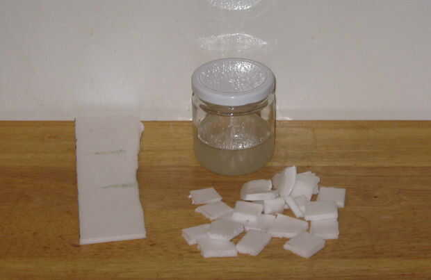 Agregar el solvente a la jarra, el poliestireno o espuma de poliestireno debe empezar a disolver casi inmediatamente.