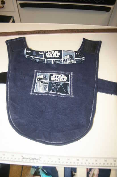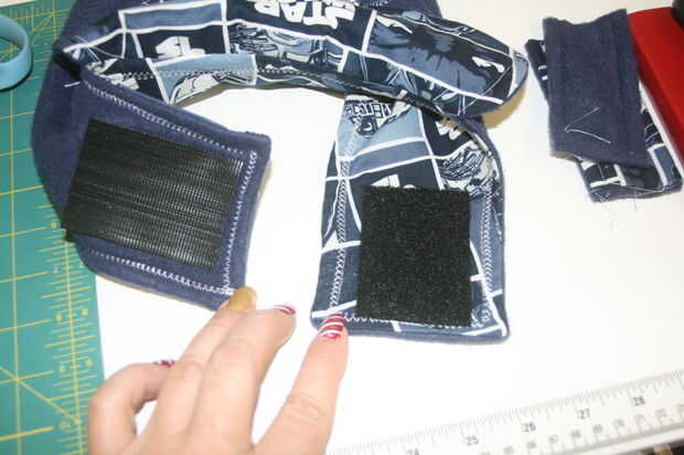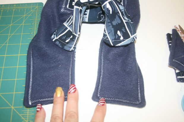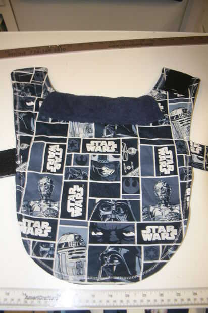 protector de colchón exterior, viejos de tela para el forro polar interior y polar. Lengüetas de velcro. Lindos bordados. Hilo, tijeras, alfileres, máquina de coser. cinta de algodón ancho de 1 pulgada.Paso 1: Mida su perro Cuello de la medida hasta