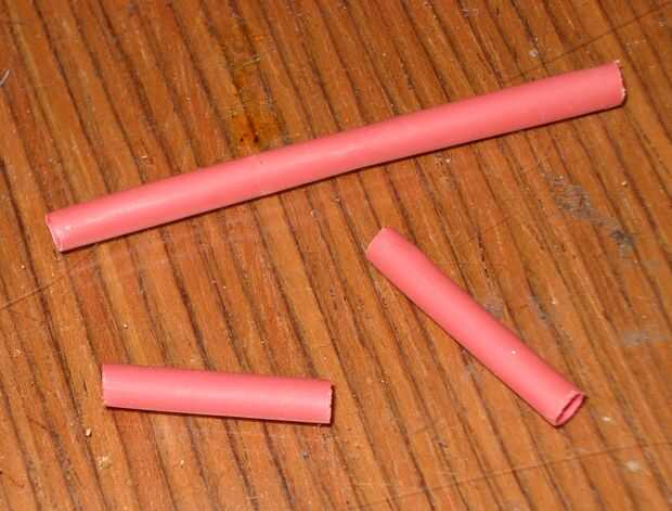 Deslice 1" de la tubería de encogimiento de calor en cada cable de clip y empuje una formas el alambre. Deslice 2" de la tubería del encogimiento del calor sobre el cable de audio y empuje hacia arriba de una manera.