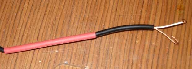 Tira de 1" de aislamiento de un extremo cortado. Tuerza los alambres sueltos para hacer un hilo grande (conductor de barril). Tira de 1/4" del alambre interior y tuerza los alambres internos.