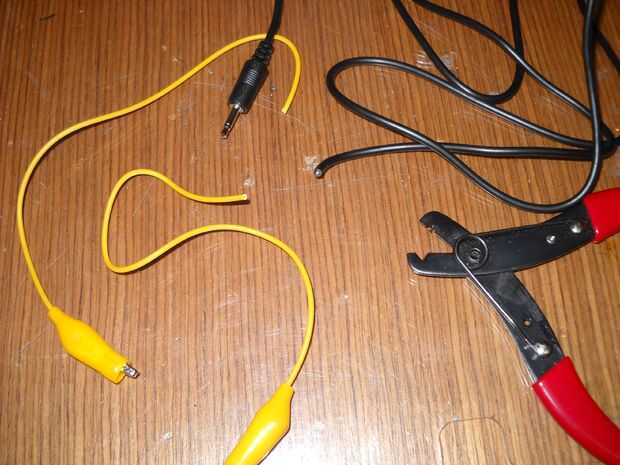 Si está usando un cable estéreo en vez de monoaurales, tienes dos cables internos. Usar un multímetro para decirle que es anillo, punta y conductores de barril. Los conductores del anillo y del barril pueden ser torcidos para hacer un cable monoaurales.
