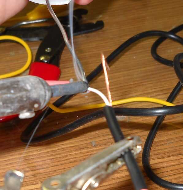 Soldar un cable de clip para el cable de conductor de punta. Suelde el otro clip cable al barril al conductor.