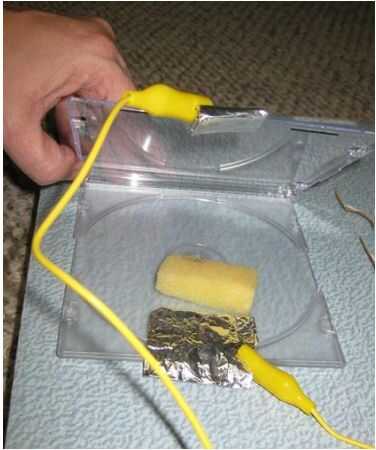 Conecte un cable de clip a cada pedazo de papel de. Pulse la caja de CD para cerrar el circuito. Comunicado de la caja del CD para abrirlo de nuevo.