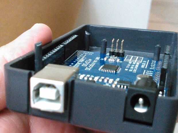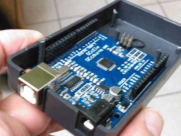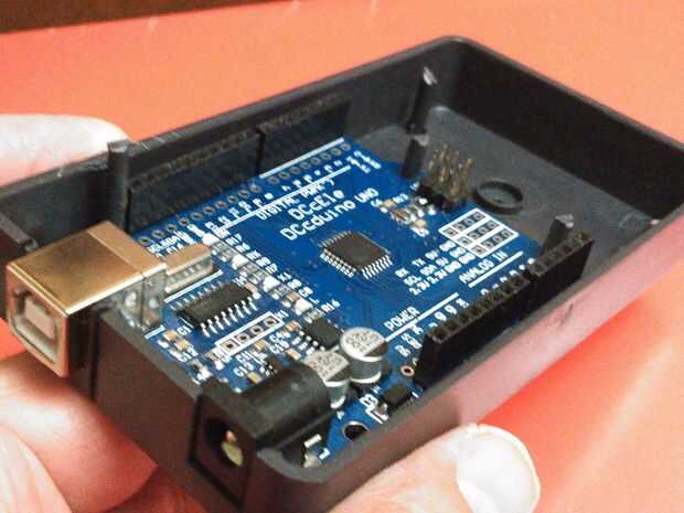Tome la caja e instale la Arduino Uno cortando los postes de plástico como se muestra en la foto.