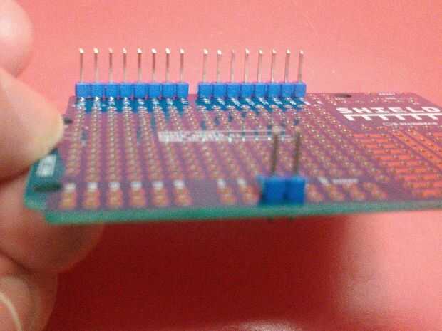 Una vez que sepa cómo hacer las conexiones entre la pantalla de LCD 16 X 2 y el PCB, debe separarlos para que puede instalar en el PWB: el conector ext encabezados utilizando pernos de 2 X 8 en el lado de los pines digitales durante el uso de 2 pines en el otro lado para conectar a GND y + 5V.