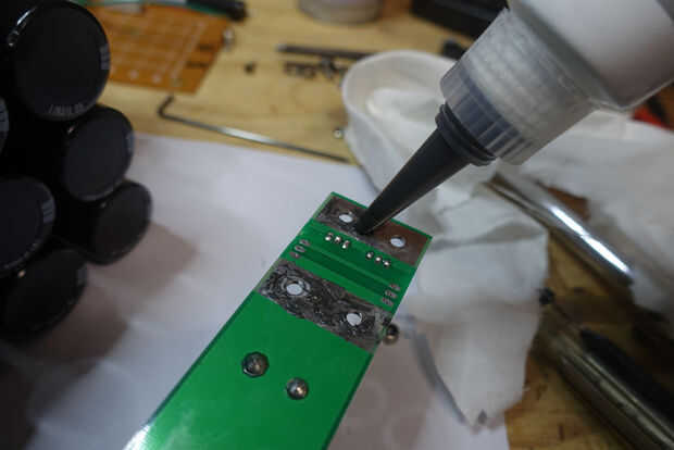 Trabaja a máquina 2 tramos de aluminio para formar barras gruesos agradables 2. El PCB entonces se montaron en la grasa barras (espalda con espalda) con la adición de un carbono cargados para asegurar una Unión buena y sostenible a la PCB.