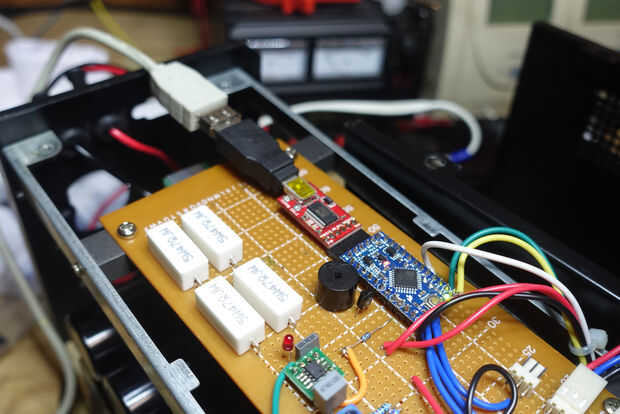 El software de Arduino está incluido aquí. Su cargado usando un cable USB y un convertidor FTDI como se muestra en la fotografía.