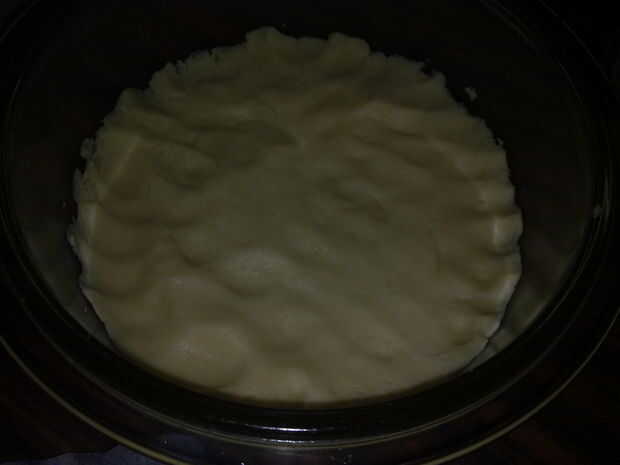 Tomar una lata de pastel y una línea con papel de horno o poner mantequilla. Presione firmemente la masa en la parte inferior y de pinchar con un tenedor.