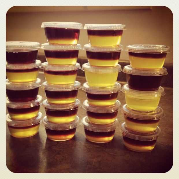 para el 4 de julio de este año que iba a una casa de amigos y quería aportar algo así que decidí hacer jello shots para celebrar el día de fiesta!  Esto fue un poco un experimento y mientras que los disparos podrían han celebrado juntos mejor, saben